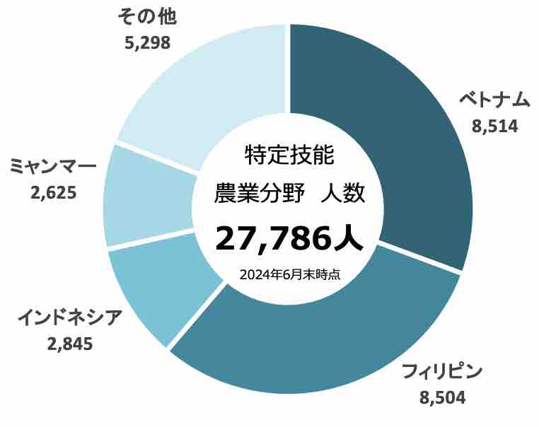 As of the end of June 2024, there are 27,786 people working in the SSW agriculture industry. Most of the workers are from Asia, with Vietnam, the Philippines, Indonesia, and Myanmar being the top countries of origin.